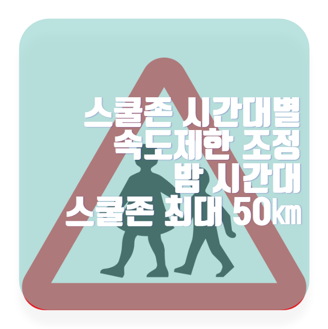 다가오는 내일부터 스쿨존에서도 시간대별로 속도제한이 조정되어 어린이 보행자의 교통안전이 강화됩니다. 보행자가 적은 밤 시간대인 9시부터 아침 7시까지, 스쿨존에서는 최대 시속 50㎞로 운전할 수 있게 됩니다. 이에 반대로 등하굣길 시간대에는 시속 30㎞로 규제가 강화됩니다.