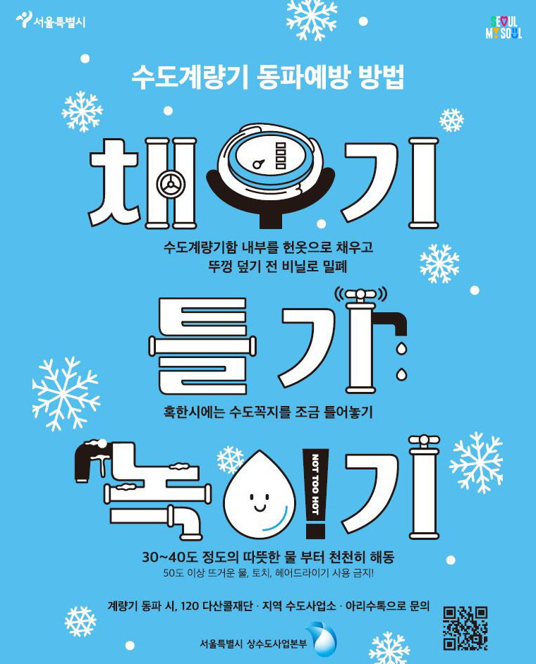 추운 겨울철에는 동파로 인한 피해가 늘어나기 쉽습니다. 서울시는 시민 여러분의 안전을 위해 최선을 다하고 있으니, 각 가정에서도 동파 예방에 적극적으로 참여하여 따뜻하고 안전한 겨울을 보내시길 바랍니다.
