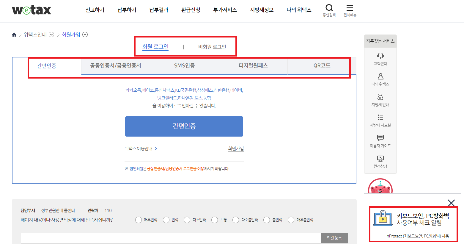 비회원 로그인은 간편인증과 공동인증서/금융인증서이 있지만 1회성이기 때문에 회원가입을 해두셔서