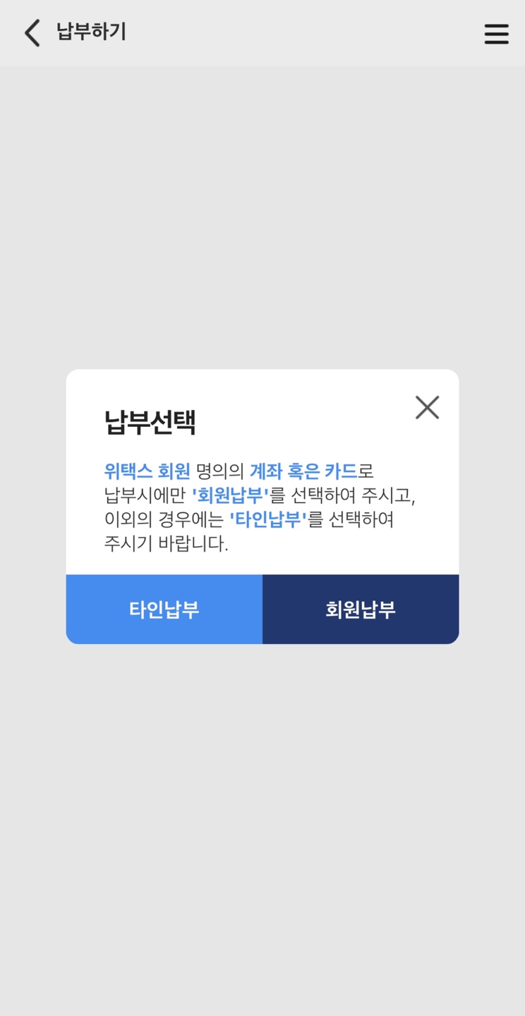 회원납부와 타인납부가 있는데, 납부하실 분께서 가족 명의의 카드로 납부를 하실 경우,