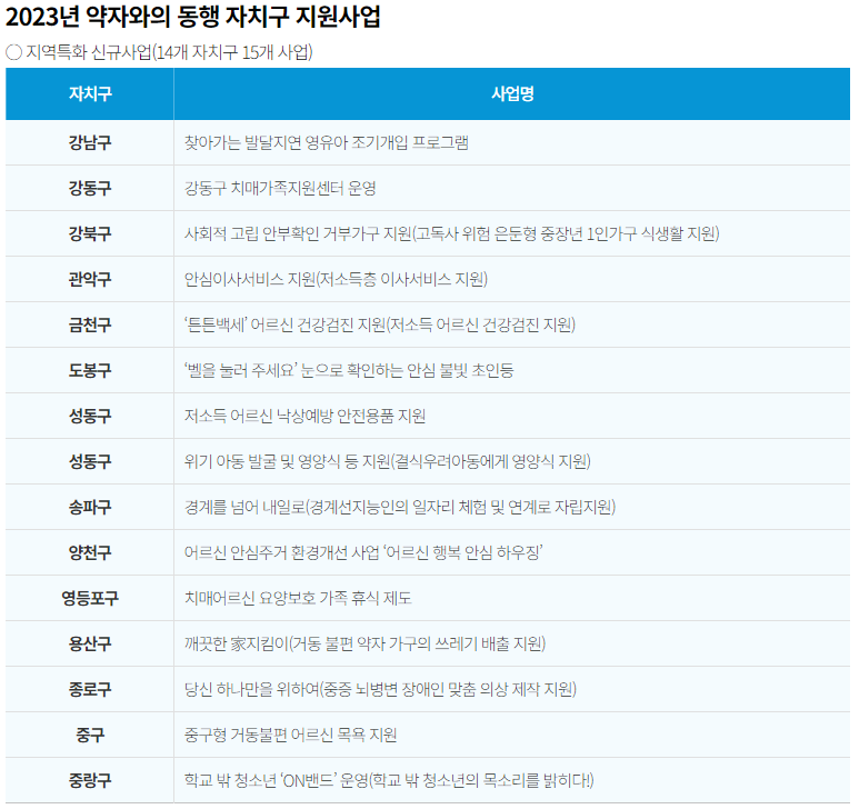 지난해에 비해 올해는 약자동행 자치구 지원사업 규모를 총 15억원으로 확대하여 진행할 예정입니다. 이를 통해 가족돌봄청년, 마음건강 취약계층, 그리고 사각지대에 있는 약자까지 보다 체계적이고 적극적인 지원이 이루어질 것입니다.