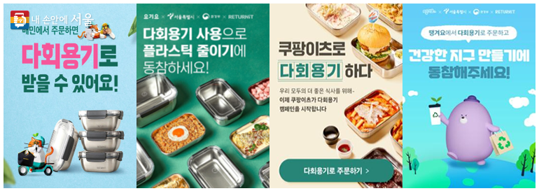 또한 배달앱에서 다회용기를 사용하여 음식을 주문하는 시민에게는 건별 탄소 중립 포인트 1,000원을 적립해 줍니다. 현재 이 서비스는 배달의민족, 요기요, 쿠팡이츠, 땡겨요 등 4개 앱에서 제공되고 있습니다.
