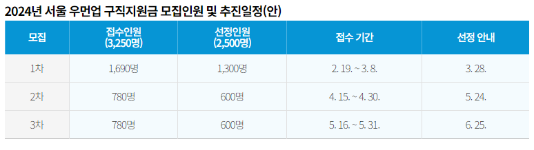 구직지원금은 3회에 걸쳐 모집되며, 1차 모집은 2월 19일부터 3월 8일까지 진행됩니다. 신청 자격은 서울시 거주하는 만 30~49세의 미취업 여성이며, 중위소득 150% 이하인 경우에 해당합니다. 신청은 ‘서울우먼업’ 누리집을 통해 온라인으로 진행됩니다.