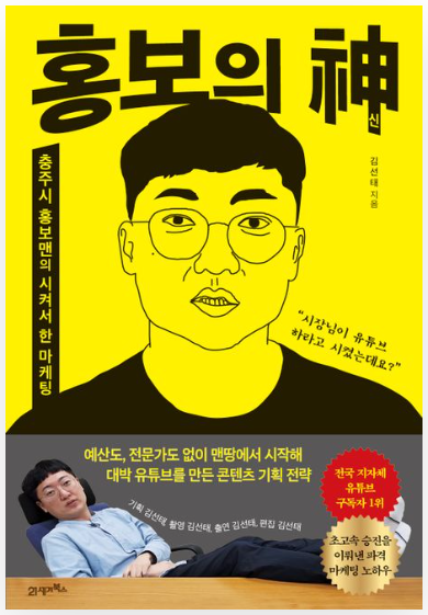 “충주시 하수도 공사 기간을 전 국민이 알게 하려면? 슬릭백을 춰라!”라는 독특한 홍보 전략으로 유튜브에서 대박을 터뜨린 김선태 주무관의 경험이 담긴 책이다. '홍보의 신'은 저자가 어떻게 저예산으로 대표적인 도시의 홍보를 성공시켰는지에 대한 비결과 전략을 소개한다.