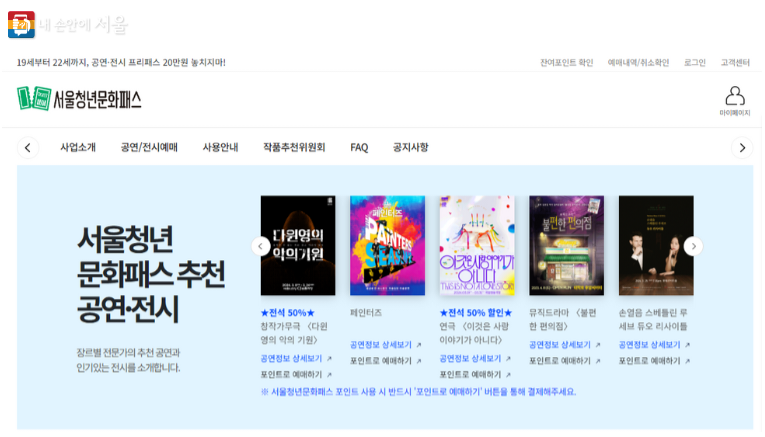 - 문의: 서울청년문화패스 고객센터 1533-3427
