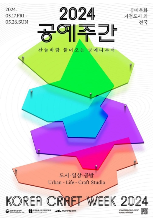 공예의 아름다움과 가치를 알리는 '2024 공예주간'이 펼쳐집니다. 문화체육관광부와 한국공예·디자인문화진흥원이 주최하는 이 행사는 오는 5월 17일부터 26일까지 전국에서 열리며, '도시-일상-공방'을 주제로 다양한 공예문화를 선보일 예정입니다.