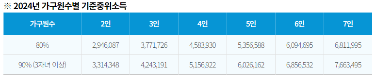 - 3자녀 이상 가구는 기준중위소득 90% 이하