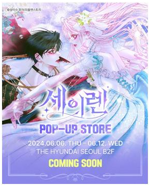 카카오페이지의 인기 웹툰 '세이렌: 악당과 계약 가족이 되었다'를 오프라인에서도 만나볼 수 있게 되었습니다. 웹소설·웹툰 제작사 피플앤스토리는 오는 6월 6일부터 서울 영등포구 여의도 더현대서울에서 '세이렌' 팝업스토어를 운영한다고 30일 밝혔습니다. '세이렌'은 신비한 목소리의 힘을 타고난 주인공 아리아가 악명높은 대공자 로이드와 계약 결혼을 한 뒤 서로를 구원하는 이야기를 그린 로맨스판타지 웹툰입니다.