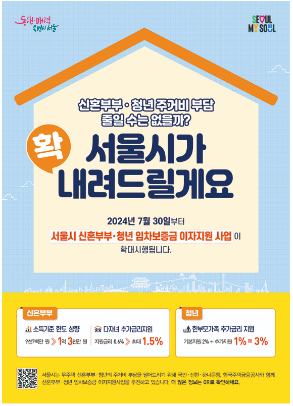 서울시는 높은 주거비로 인해 출산을 망설이는 신혼부부에게 아이를 낳을 결심과 확신을 심어주기 위해 '신혼부부 임차보증금 이자지원' 사업을 확대하기로 했습니다. 이번 확대 혜택은 7월 30일 이후 신규 대출 신청자와 기존 대출 연장 신청자부터 적용됩니다.