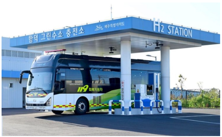 현대차그룹은 소방청과 제주특별자치도와 함께 수소연료전지 버스를 소방관 회복지원차량으로 기증하는 프로젝트를 진행했습니다. 회복지원 수소버스는 휠 때 물만 배출하고 소음과 진동이 없어 소방관들이 화재 진압 후 쉴 수 있는 최적의 환경을 제공합니다. 이 버스는 실제로 대형 화재 현장에서 교대로 투입되는 소방관들이 편히 쉴 수 있는 공간을 제공합니다.