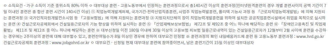 실업자와 비정규직근로자 그리고 무급휴직자, 자영업자인 피보험자가 직업훈령 생계비의 지원대상이 됩니다.