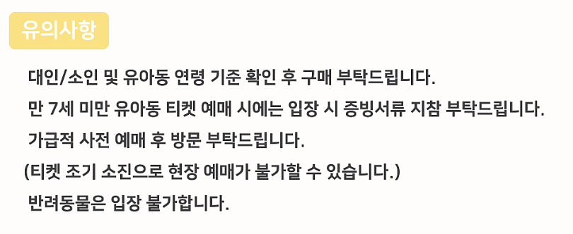 예매와 관련하여 유의사항은 아래와 같으니, 예매에 하시기에 앞서 한번씩 읽어보시길 바랍니다.