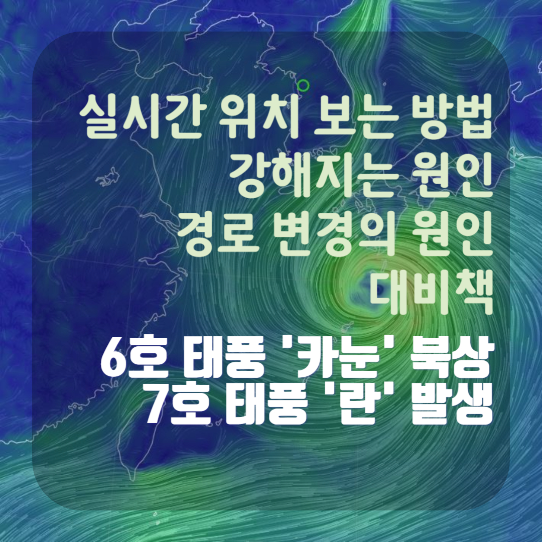 태풍의 발생과 원인 태풍은 강한 바람과 호우를 동반한 폭풍으로, 주로 열대 지방에서 형성됩니다. 태양열로 바다의 수면이 가열되고 수증기가 상승함에 따라 공기가 높이 치솟아, 여기에 지구 회전력의 영향을 받아 회전하는 원반 모양의 대기 현상으로 발생합니다. 이 때문에 태풍은 정상적으로 형성될 때까지 수십 시간에서 수백 시간이 소요될 수 있습니다. 이번 6호 태풍의 '카눈'이 한반도를 향해 북상하는 가운데, 7호 태풍 '란'이 일본 해역에서 발생했습니다. 태풍의 위치를 실시간으로 보는 방법과 태풍이 강해지는 원인, 경로를 변경하는 원인과 태풍 대비책에 대해 알려드리겠습니다.
