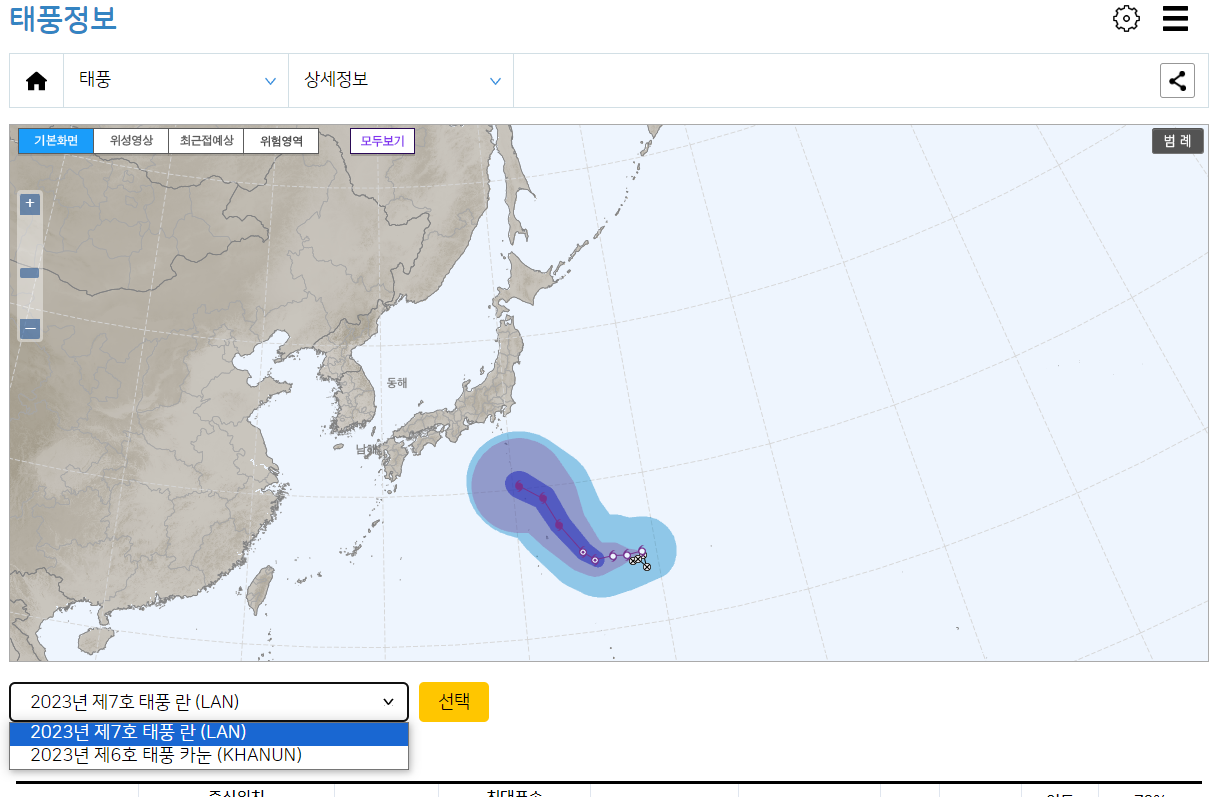 태풍의 위치를 실시간으로 보는 방법으로