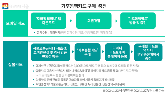 2024년 1월 27일, 서울시에서는 친환경 교통혁신을 위한 대중교통 무제한 이용 카드인 '기후동행카드'를 출시합니다. 기후와 교통 환경변화에 대응한 이 카드는 기대를 모으며 대중에게 새로운 교통 서비스를 제공할 예정입니다.